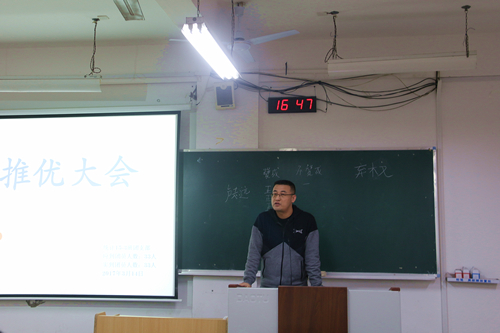 为了推荐优秀团员作为党的发展对象,为党组织输入新鲜的血液,响应党的号召,满足党的事业发展的战略需要,同时为了各团支部的团支书更熟悉推优大会流程,推进理学院推优工作的顺利开展,2017年3月14日16:30理学院于雁山校区06211教室举行了推优示范大会,理学院团委书记单江涛老师、各党支部成员、团委组织部成员以及14、15、16级各团支书、组织委出席了本次大会。