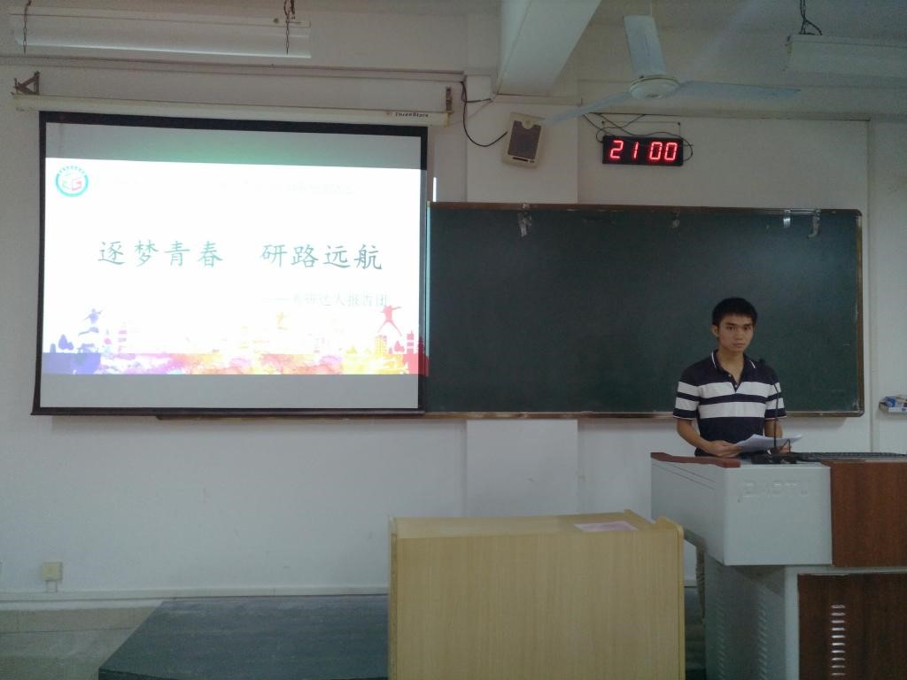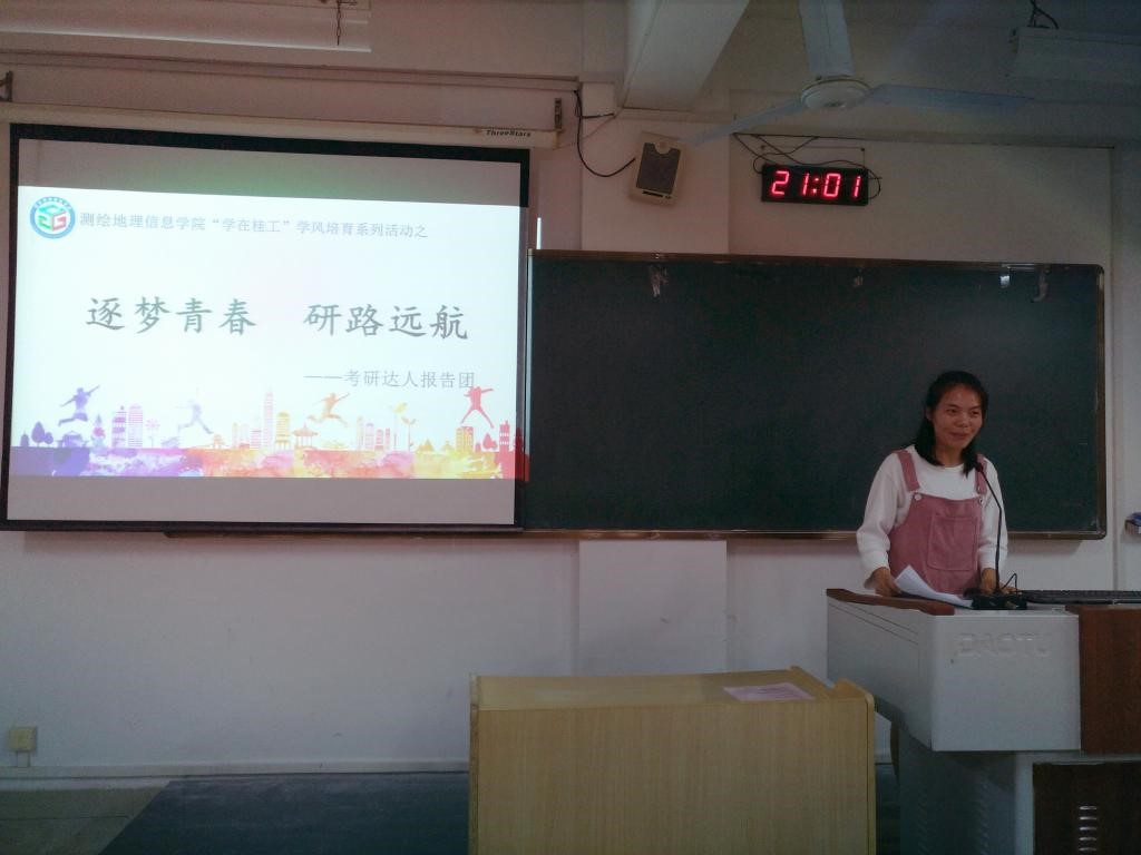 为推进“学在桂工”学风培育建设活动的深入开展,帮助同学们树立正确的考研目标,激发学习热情。2017年5月7日晚,测绘地理信息学院于雁山校区06202、06203、06209教室开展以“逐梦青春,研路远航”为主题的考研达人报告团巡讲活动。本次活动邀请了本届考研成功的典型——姚明星、李伯祥、杨芸珍等九位考研达人进行巡讲,各年级学生参加了本次活动。