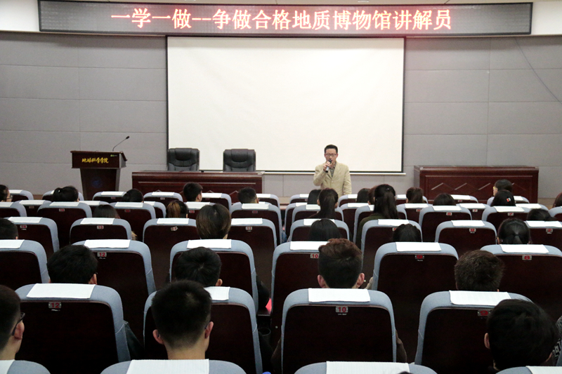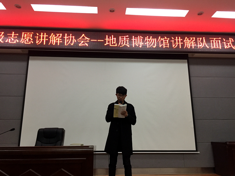 工作中,地球科学学院团委按照学校“一学一做”教育实践推进会的会议部署要求,为扎实做好“学习总书记讲话 做合格共青团员”教育实践,以此为契机,通过线下设点宣传,结合微信、微博等新媒体途径,面向全校,在广大青年团员中广泛动员。最终,从礼仪礼节、普通话和专业知识等方面加以考核,历经三轮面试,来自不同学院的71名学生成为地质博物馆讲解队首批成员。
