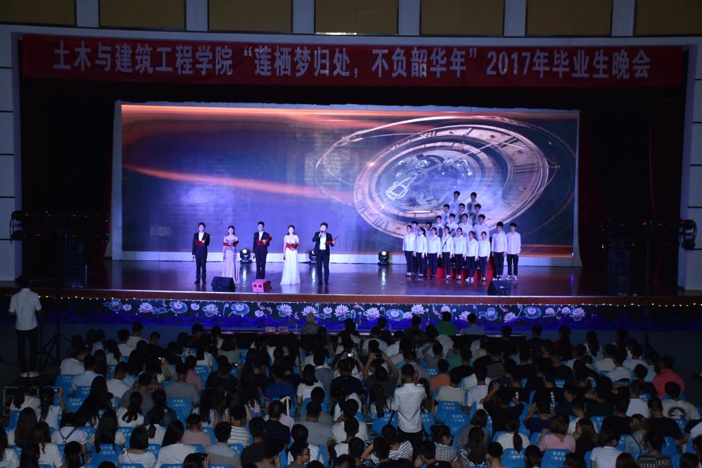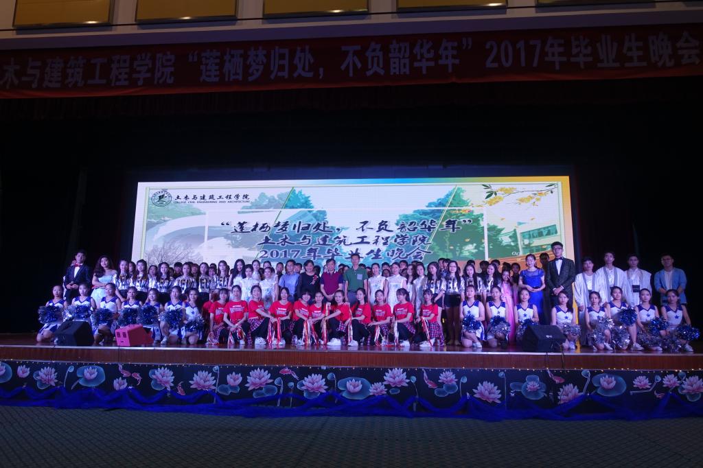 六月盛夏,梦归伊年;歌舞青春,征战前程。6月9日晚,土木与建筑工程学院“莲栖梦归处,不负韶华年”2017年毕业生晚会于学校屏风校区体育馆三楼隆重举行。学校副校长陈学军、学工部(处)副部(处)长冯广辉、学院党委书记熊英、学院副院长余文成老师、学院党委副书记王盛、学院院长助理虞爱平与师生们一同观看毕业生晚会。