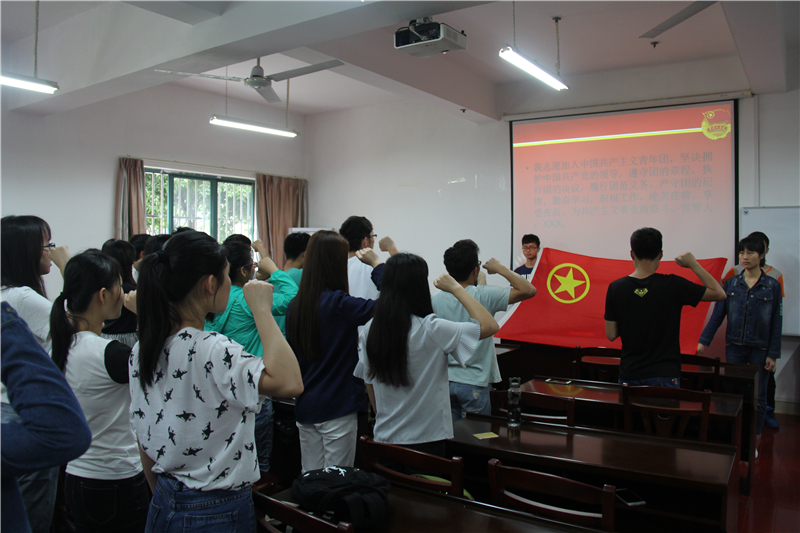 5月19日15:00,在理学院团委的积极指导和组织下,统计15-1团支部于雁山校区07122会议室开展了老团员重温入团誓词活动。