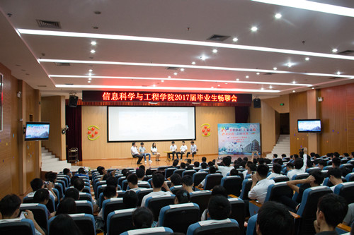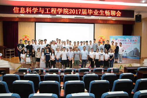 时光如梭,转眼又到毕业季。6月22日晚,信息学院在雁山校区图书馆报告厅举办了以“美的历程E彩青春E起启程走向未来”为主题的2017届毕业生畅聊会。学院党委副书记李彦东、团委书记陈俊乐、13级辅导员梁新堂以及其他年级的辅导员老师出席了本次畅聊会。