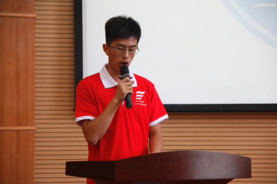 仪式第二项,学院辅导员李冲老师宣读暑期留校安全承诺书及社会实践安全承诺书。他从三方面详细地给同学们讲述了存在的安全问题。他提醒同学们,离校要遵守国家法律法规,不偷、不抢、不骗,注意交通安全,做好自我安全防范,提前做好开学准备;留校要服从学校管理,遵守活动的各项安全和纪律要求,不私自到正规游泳场之外的水域游泳;在社会实践活动中确保所有安排和联系妥当,灵活、冷静应对突发事件,遵守实践团队的组织纪律。