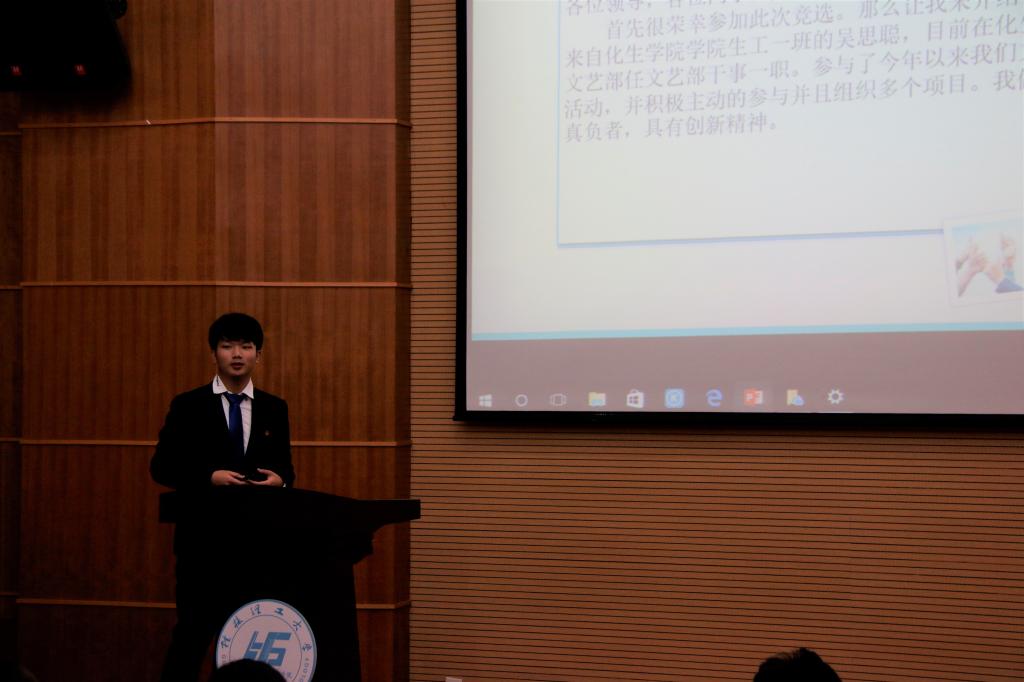 本次竞选分候选者个人发言、评委提问和无领导小组讨论三个环节。苏耀杰等九位主席团候选人分别从个人介绍、工作总结、职位认知、未来展望等方面作了详细而激情的演讲。演讲中,候选者表现沉着冷静,并从团队建设、工作思路、工作目标、工作创新等方面一一进行了阐述。