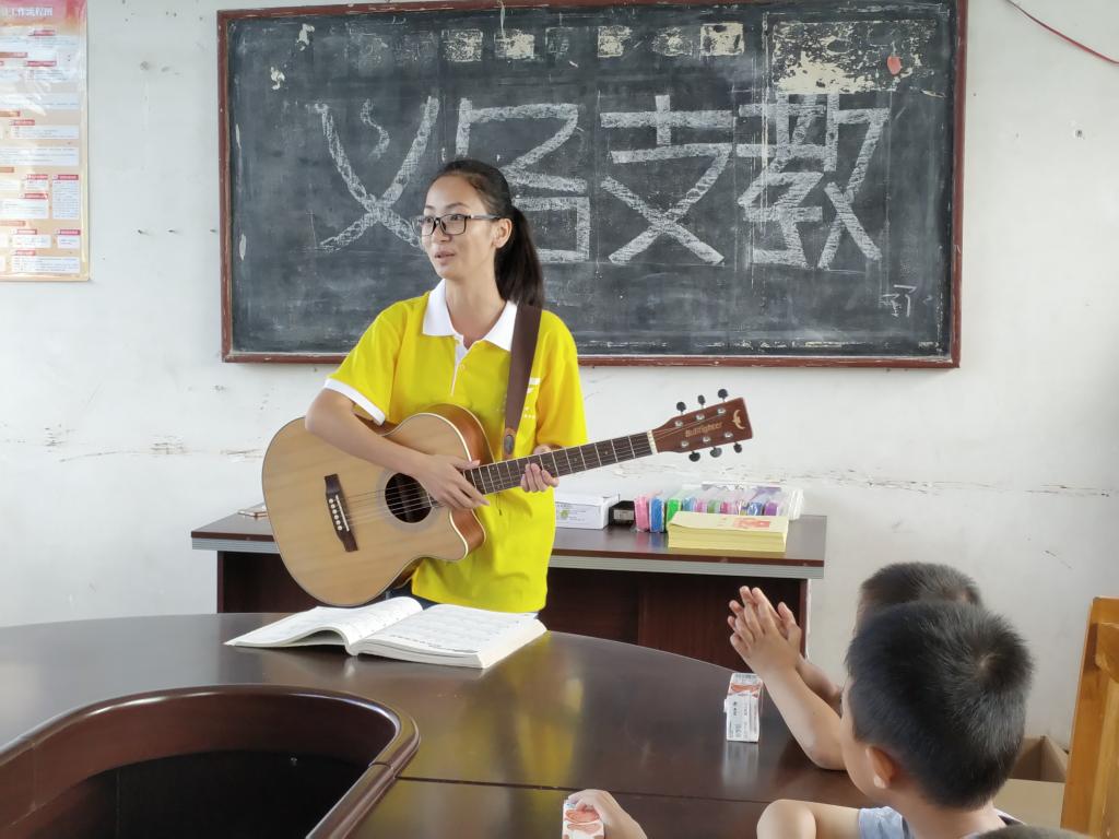 实践队队员给孩子们上音乐课