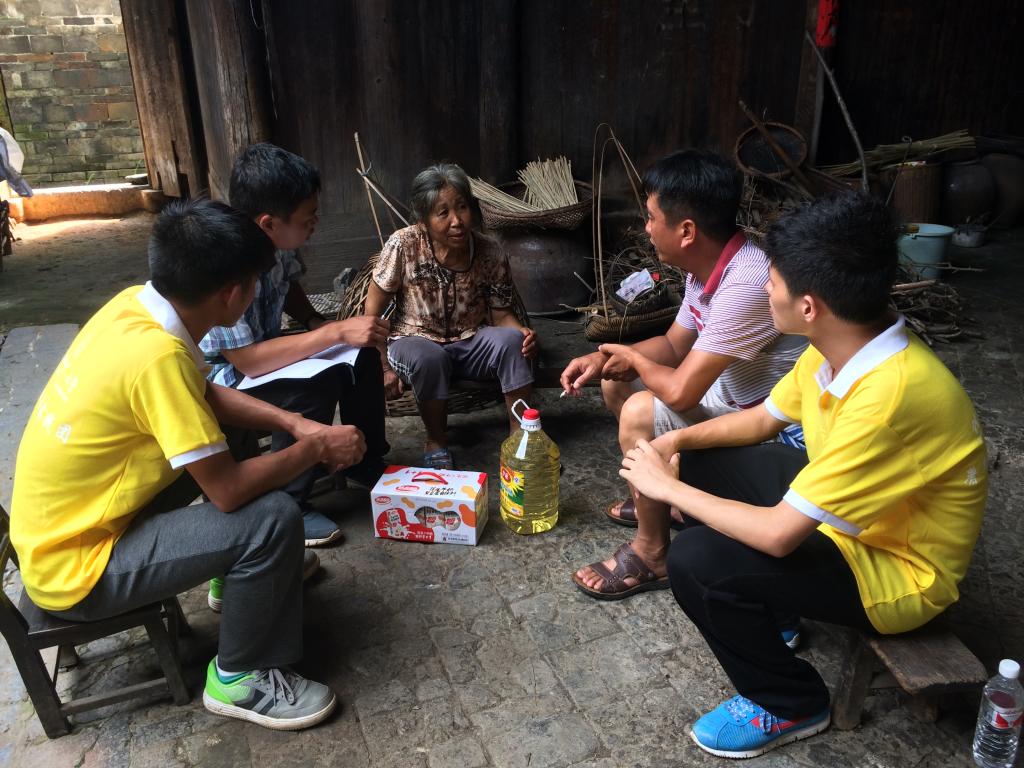 老人向实践队队员说明家庭情况
