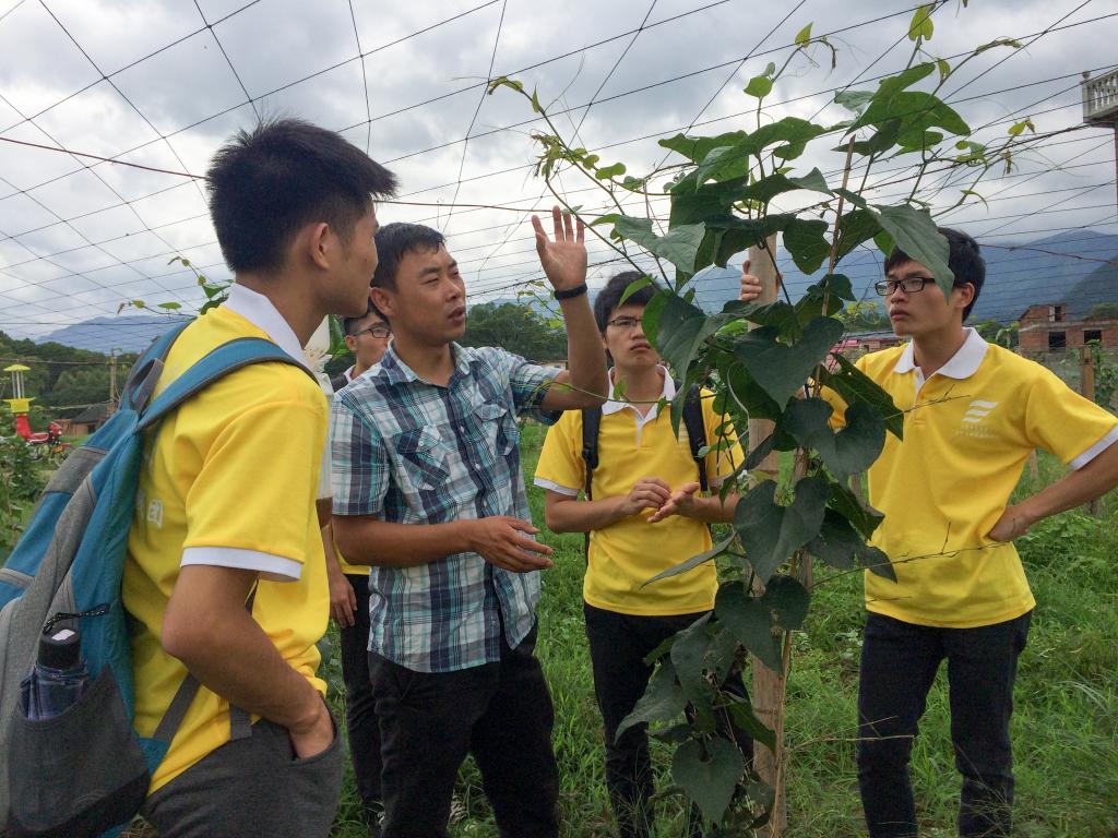 当地负责人为实践队队员介绍罗汉果的生产情况