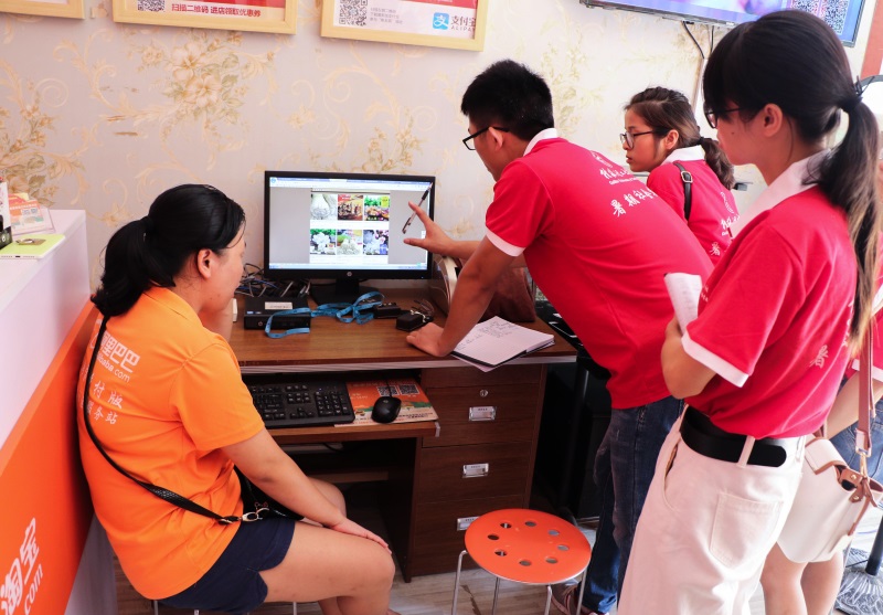 实践团队首先走访鹿寨县政府电商办,从电商办了解鹿寨县农村电商发展的整体现状后,接着先后参观了当地的物流中心、众创空间、电子商务服务中心、农产品合作社、农村淘宝服务站等多个地方,调查当地群众对电子商务相关方面的理解程度、接受程度以及当地特色产业发展现状。在调研过程中,实践团对当地群众进行现场电商知识的指导,包括网店的装修与设计、产品的运营推广和店铺流量提高的方案等。通过指导,帮助当地群众掌握了一定的电商知识,应用电商与互联网相结合进行产品销售,树立特色农产品品牌,倡导销售商间与生产商间联合发展,形成系统化的生产—销售模式,把当地更多的特色农产品卖出去,服务“三农”发展,推动兴商致富。