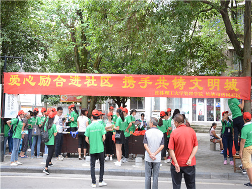 为响应桂林市创建全国文明城市系列活动,beats365亚洲版管理学院励合社于2017年9月12日在桂林市叠彩区清风社区开展了以“文明进社区,爱心满空巢”为主题的爱心进社区活动。