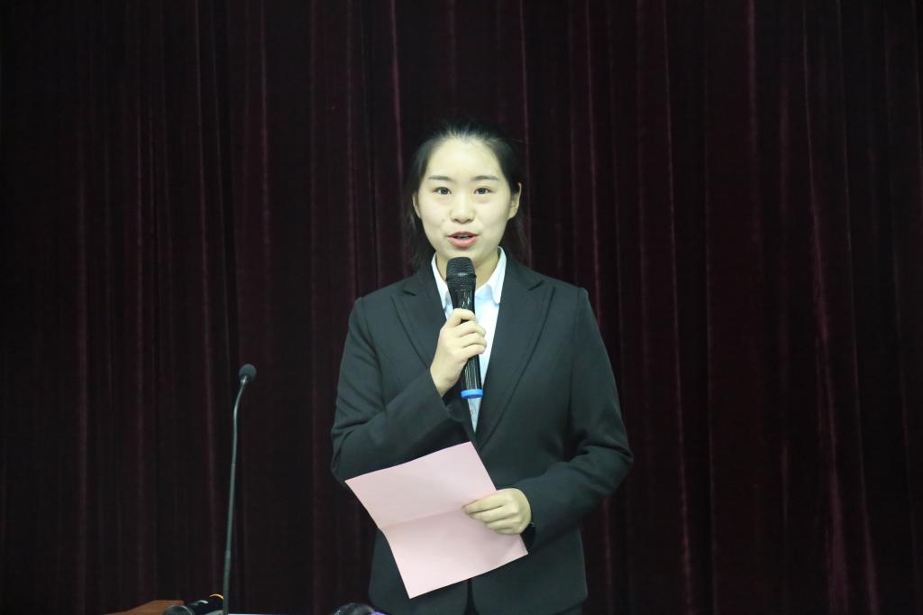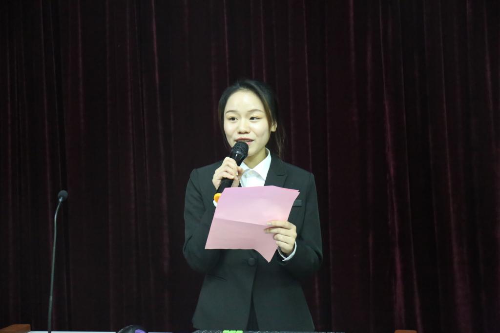 最后,商学院团委副书记曾丽萍上台发表总结讲话。在讲话中,她首先代表学院团委对过去一年的学生工作中为学院发展付出辛苦和努力的老干部们表达了感谢,同时通过自身的学生干部经历,简述了学生工作的意义以及影响。接着,曾丽萍老师对新任干部提出了自己的建议,她指出学生会中人才济济,要向优秀的人学习。其次要学会思考,提高思想高度,形成自身工作思路,推动自己的发展,最后,曾丽萍老师强调所有成员之间要建立良好的友谊,为管理学院更美好的明天奋斗。