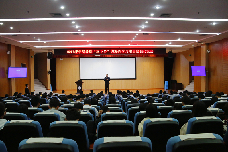 为积极宣传、及时总结学院暑期“三下乡”工作在组织、开展及展示等方面的成果,同时展示理学院看世界项目学生的良好形象,理学院于11月3日19:30在雁山校区图书馆报告厅成功举办暑期“三下乡”暨看世界学习项目经验交流会。理学院团委书记单江涛、2017级辅导员李鹏宇、2015级辅导员陈志鹏、李敏、理学院团委学生会主席团、看世界项目学生及各兄弟学院科实部部长受邀出席本次交流会。理学院“三下乡”团队成员与理学院部分学生参加了此次交流会。