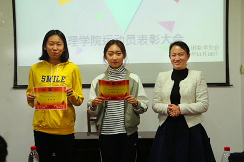 首先,在座师生回看了本次运动会参赛选手风采视频,其后,受邀嘉宾为获奖的集体和个人进行颁奖。接着,运动员代表栾佳鑫和王厚凯分别发言,鼓励学弟学妹们积极参加体育锻炼和各项活动,为学院争得荣誉。最后,孙巍老师对活动进行总结,她首先对本次运动会取得的成绩表示肯定,对所有参赛运动员、工作人员和各班级的辛勤付出表示感谢,积极践行“三走”活动,希望同学们把赛场上遇到困难顽强拼搏、坚忍不拔的精神运用到学风建设中去,努力成为一个身体素质过硬、基础知识过硬、综合能力过硬的文明大学生。