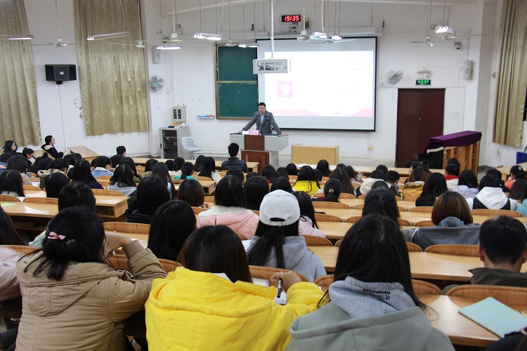 陈小波老师从“新时代”“新思想”“新的使命”“新的征程”“新的期待”等五个方面对十九大报告进行全新的分析,对中国特色社会主义进入新时代的内涵和历史地位作了全面解读。并结合实际,对在座青年学生提出了四点要求:一是立报国之志,二是修养身之德,三是明学习之道,四是读无字之书。