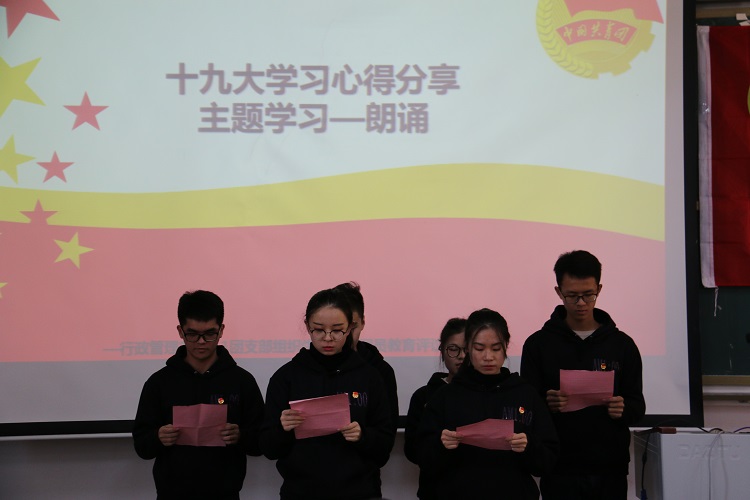会上,同学们首先进行了党的十九大精神的学习,梁孙宾同志作为代表分享了自己的感受,各小组以朗诵的形式表达了对党的十九大”的所感所想;团支部每个成员结合工作学习生活实际,分享学习党的十九大精神的心得体会并对个人进行自我总结;接着,围绕学习情况、发言情况和日常表现情况对团员进行评议。确定了王妍妍等10名团委评议优秀,梁琅等22名团员为合格。