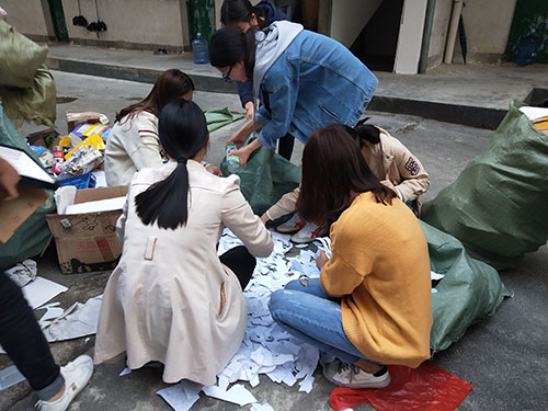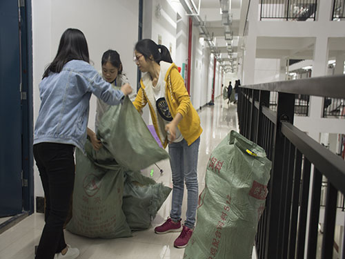活动过程中通过各组志愿者同学的辛勤努力,大家将回收到的各类废品收集到指定地点并进行了重新分类装袋,此次的绿色回收活动在大家的共同努力下更高效快速的完成了此项活动。
