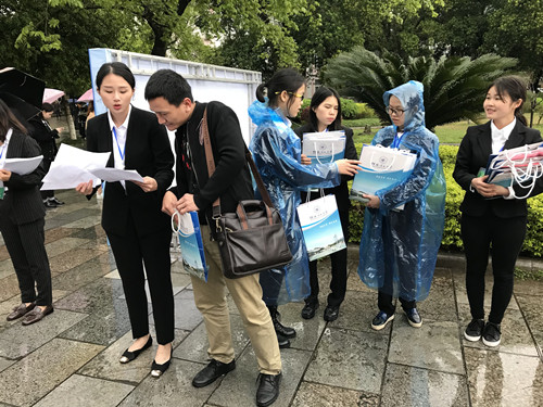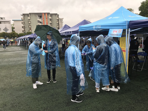3月17日, 2018年广西高校毕业生春季双选会暨beats365亚洲版毕业生双选会在我校屏风校区足球场顺利举办。为了给用人单位和应届毕业生提供优质的服务,商学院组织234名学生志愿者承担了此次双选会的会务筹备、接待、咨询、引领等志愿服务工作。尽管狂风大雨,志愿者们秉承着“奉献、友爱、互助、进步”的服务精神,为即将踏入社会的师兄师姐们和用人单位提供了热心周到的服务,在来自各界的招聘单位面前展现了商院学子蓬勃向上、积极进取、乐于奉献的青春风采。