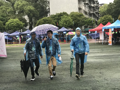 风雨中的志愿者们