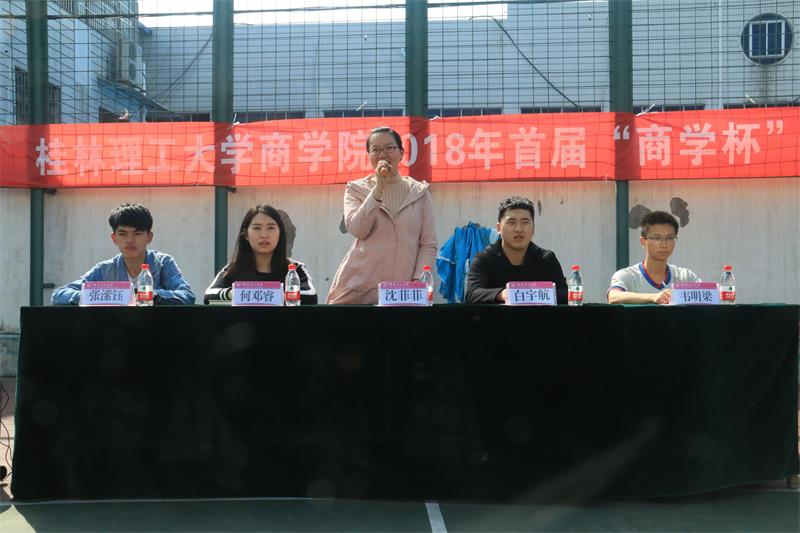最后,商学院学工组长沈菲菲老师宣布2018年“商学杯”篮球赛暨排球赛正式开幕。