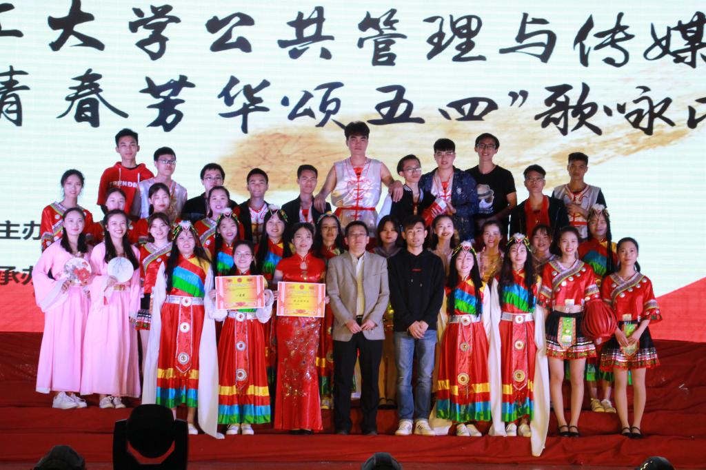 在经历了激烈的角逐后,评选出了一、二、三等奖及魅力指挥奖。行政管理15-2班以一首《中国美》夺得桂冠,各位评委老师分别为获奖的班级和个人颁奖。