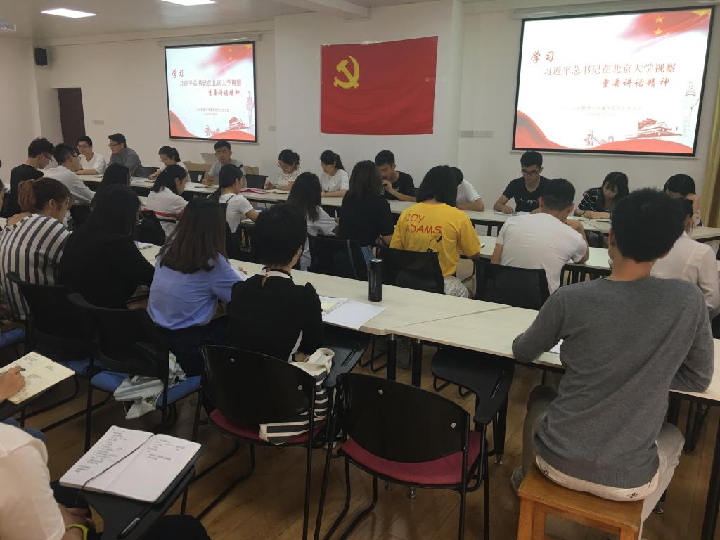 5月6日下午,公共管理与传媒学院本科生党员在07513开展了“学习习近平总书记在北京大学视察重要讲话精神”的学习分享会。学院行政管理党支部书记陈琳同志、广告学党支部书记王志伟同志和社会工作党支部书记时香丽同志出席此次会议,学院全体本科生党员参加,会议由党建中心主任韦红思同志主持。