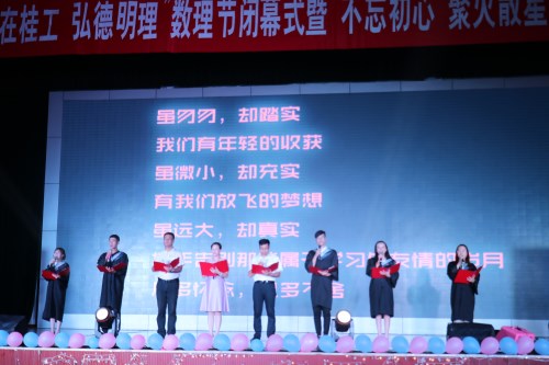 通过此次晚会,让毕业生们最后感受一次到校园的情景,激发爱校热情,在今后的工作中共同谨记“厚德笃学,惟实励新”的校训,传承“乐业乐学 求实求新”的院训。同时,本次晚会的结束,也标志着理学院第九届数理节圆满闭幕。此次晚会的顺利举办,进一步推进学院校园文化的蓬勃发展,活跃学习氛围,给同学们一个真正展示自我风采和勇气的舞台。