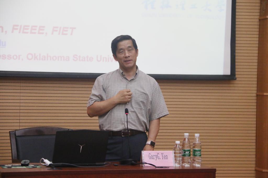 Yen教授首先介绍了进化计算,讲述了进化计算的概念,并从日常生活中常见的例子以及目前热门的人工智能出发解释多目标优化问题,简述了其发展历史、研究现状及重要成果。接着,Yen教授阐述了进化计算的宽阔应用领域和遇到的挑战,并结合自己丰富的科研经验给大家提出了几点学术建议,寄语殷殷期盼。在座的师生反响热烈,受益匪浅,并就多目标优化的相关问题积极的向Yen教授请教,Yen教授对提出的疑问进行了交流讨论。