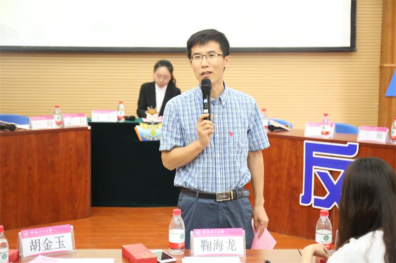 决赛伊始,双方辩手就“金钱追求与道德追求能否统一”这一辩题陈词质询,紧紧围绕“金钱观、道德观”这一与社会生活密切相关的问题展开辩论。双方辩手们在驳论质询环节和小结陈词环节中思路清晰,引经据典,使现场气氛迅速升温。在最精彩的自由辩论环节中,双方辩手交替发言,字字珠玑,能言善辩。赛场上的唇枪舌剑,双方辩手妙语连珠,赢得观众阵阵掌声。在评委和观众提问环节,双方辩手针对所提的问题从自身论点出发一一作了回答。最后,电商专业代表队获得冠军,来自正方四辩的吕子晗和反方三辩的邓子涵同学获得最佳辩手称号。随后,学院辩论队主力陈子书、李悦为每场比赛的最佳辩手颁奖。教研室鞠海龙、胡金玉上台分别为本次比赛的冠军、亚军和季军颁奖。鞠海龙老师对参赛选手的精彩表现给予高度评价,同时也指出了不足之处,希望辩手们不断提高思辨能力和语言表达能力。本次辩论赛决赛至此结束。