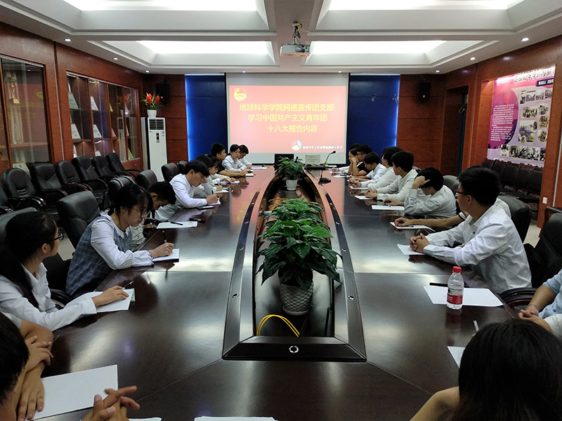 中国共产主义青年团第十八次全国代表大会于6月29日在人民大会堂闭幕。6月30日上午,地球科学学院网络宣传团支部组织新闻中心、易班学生工作站暨新媒体工作室全体成员于逸夫楼01215会议室召开共青团十八大专题学习分享会,会议由团支部书记陈春艳主持。
