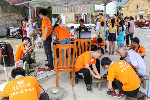 为了更好地发挥社会实践团队员们的专业特长,2018年7月14日,实践团在黄关镇商家村党群服务中心开展了义务维修活动。