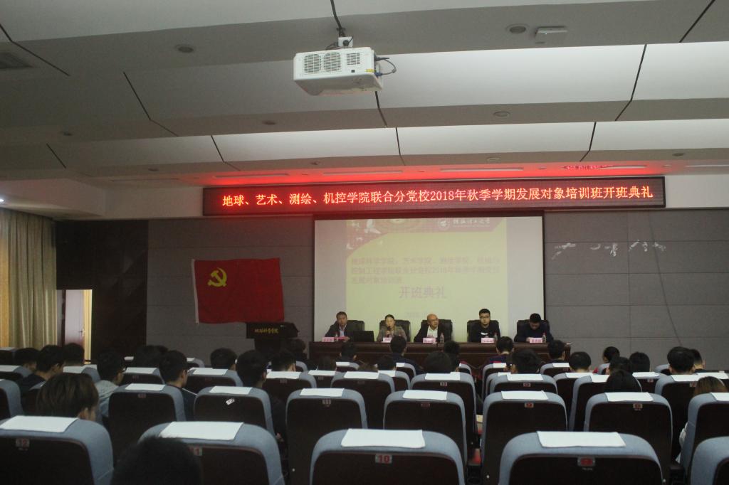 2018年10月26日,地球、艺术、测绘、机控学院联合分党校于01501会议室举行2018年秋学期发展对象培训班开班典礼,各学院分党校老师及培训学员参会。典礼由李永伟老师主持。