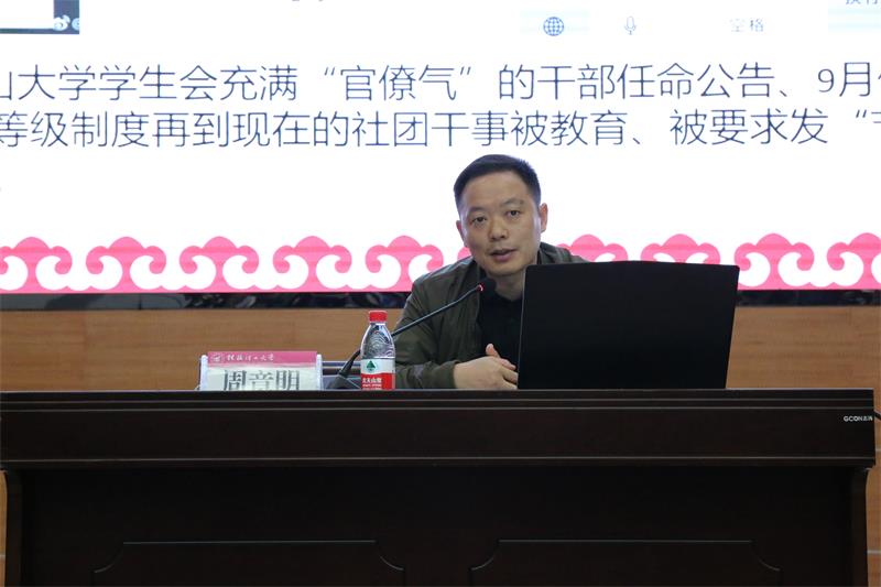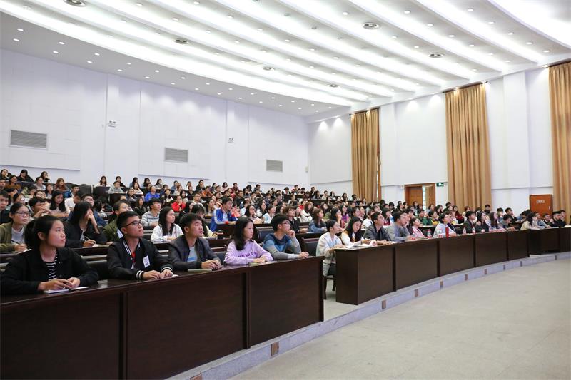 10月13日上午,商学院团委在屏风校区图书馆报告厅开展“青年大学习”专题学习会,旨在针对近期一些高校学生干部中出现的官僚化、功利化、庸俗化等问题,教育引导商学院青年学生端正学习态度,改进工作作风,商学院党委书记周章明受邀为全院学生干部开展题为“凝聚青春正能量,引领学生干部健康成长”的专题报告会。商学院党委副书记沈菲菲老师、各学生组织指导老师以及各学生组织学生干部200余人参加了学习会,学习会由沈菲菲老师主持。