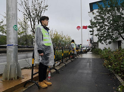 细雨绵绵的清晨,志愿者们从校门口一路小跑四公里到达路段岗位。因为有前期学校开展的志愿者培训工作,志愿者们到达现场后有条不紊地协助民警清理道路、排除周围安全隐患、做好封路安保执勤与维持个人所负责路段的秩序等相关工作,确保赛事的顺利进行。志愿者们尽职尽责地坚守在岗位上,在曹老师的带领下,志愿者们帮助民警将路段上的警戒线收拾整理后,有序离开。