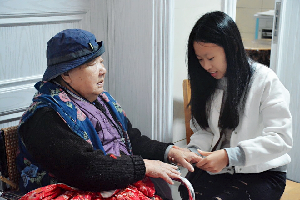 志愿者帮老人活动手指(二)