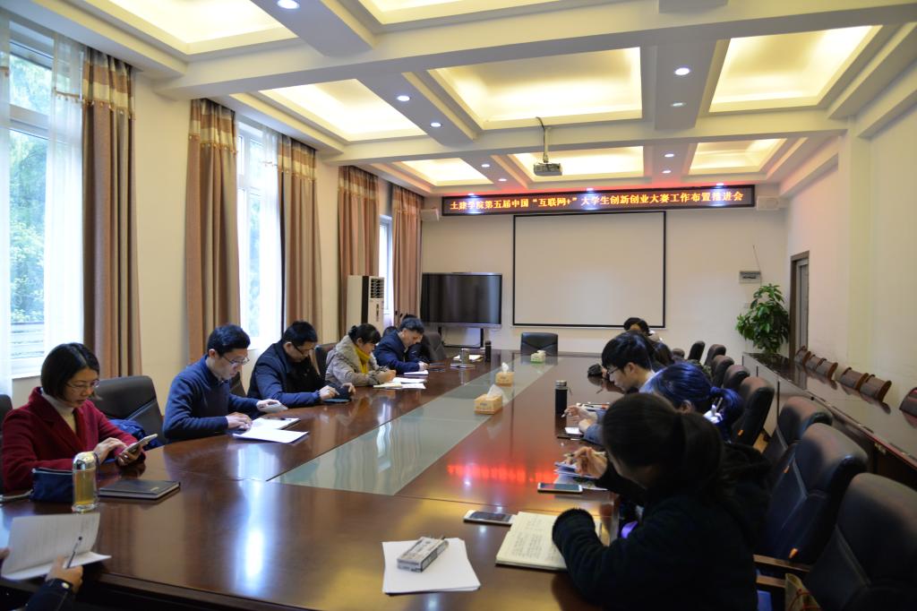 为进一步统一思想,做好第五届中国“互联网+”大学生创新创业大赛组织参赛与部署工作,推动土建学院创新创业工作取得良好成绩,1月9日上午,土建学院召开第五届中国“互联网+”大学生创新创业大赛工作布置推进会,学院党委书记熊英、学院院长钱凯、学院党委副书记王盛、副院长刘之葵、副院长余文成、副院长赵军、院长助理邓春凤出席参加了此次会议,学院各教研室主任和两办负责人参加了此次会议。会议由学院副院长余文成主持。