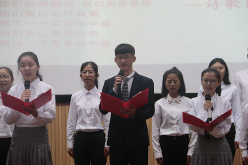 活动伊始,大家在学生代表的带领下起立奏唱团歌。随后,通过各类别出心裁的节目演出,理院旅团踏上了旅途。先是一首热血澎湃的诗歌朗诵《青春中国》,让在场的各位领略了中国从鸦片战争,说到五四的爱国青年觉醒,直至今日新中国磅礴发展的过程。再有触动人心的舞台剧《信仰 青春》,让大家一同回顾了那段难忘的革命岁月,一起追寻心中共同的青春信仰。接着,活动以视频的形式回顾了中国革命斗争的历史语录,并展望十九大到未来,见证了中华民族的复兴。最后,孙巍老师对本次活动进行总结,她对本次大型团日活动给予了极大的肯定,同时表示充分发挥团组织在服务青年学生成长成才中的重要作用,并激励大家积极培育践行社会主义核心价值观,完成我们的各种使命。
