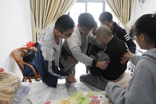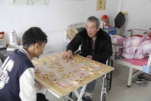 上午十点,志愿者们带着慰问品来到敬老院,受到了院长和爷爷奶奶们的热烈欢迎。志愿者们以小组为单位到对应房间陪伴爷爷奶奶,他们有的陪爷爷下象棋,有的陪奶奶出去散步,还有的给老人们唱歌。当一首首红歌萦绕在耳畔,渐渐地勾起爷爷奶奶们年轻时的回忆,有一位爷爷当场激动地站了起来,为志愿者们讲起了自己年轻时候唱红歌的事迹,脸上还洋溢着幸福的笑容。相聚的时光总是那么的短暂,两个多小时一晃而过,最后,志愿者们向爷爷奶奶们不舍地告别并一起合影留念。扬帆社的李寿彬同学说:“老吾老以及人之老,尊老敬老是中华民族的传统美德,爱老助老是全社会的共同责任,这是我第三次来这里看望老人们,我认为陪伴才是对他们最好的关爱方式”。