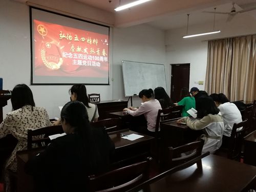 活动伊始,在党支部副书记周林英同志的带领下,支部全体党员集体朗读了党章的部分内容;接着,周林英同志为大家简要介绍了五四运动发生的背景、过程、性质以及意义。她强调,五四运动促进了马克思主义在中国的传播及其与工人运动相结合,从而在思想上为中国共产党的建立准备了条件。随后,支部党员共同观看了电影《我的1919》,该电影以参加巴黎和会的中国代表团拒绝在“凡尔赛和约”上签字的历史事件为背景,讲述了中国外交才子顾维钧参加巴黎和会的一次经历。两个小时的影片,展现的是中国青年在风雨如磐、民族危亡的历史关头,为救亡图存、振兴中华奔走呼号,奋不顾身,他们表现出的高尚爱国情操和大无畏的英雄主义是中华民族宝贵的精神财富。最后,同志们主动分享了自己的观影感受,并纷纷表示更加坚定了自己为实现中国梦而共同奋斗的信念,增强了作为时代先锋应该具备的责任感与使命感。