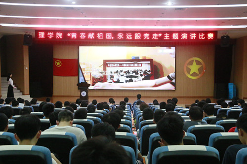 为庆祝中华人民共和国成立70周年、纪念五四运动100周年,充分展现学生团员积极向上的良好精神风貌。4月27日下午,理学院团委组织学生在雁山校区图书馆报告厅组织开展了以“青春献祖国,永远跟党走”为主题的演讲比赛,理学院全体辅导员出席比赛现场,2017、2018级学生团员代表参加本次比赛。