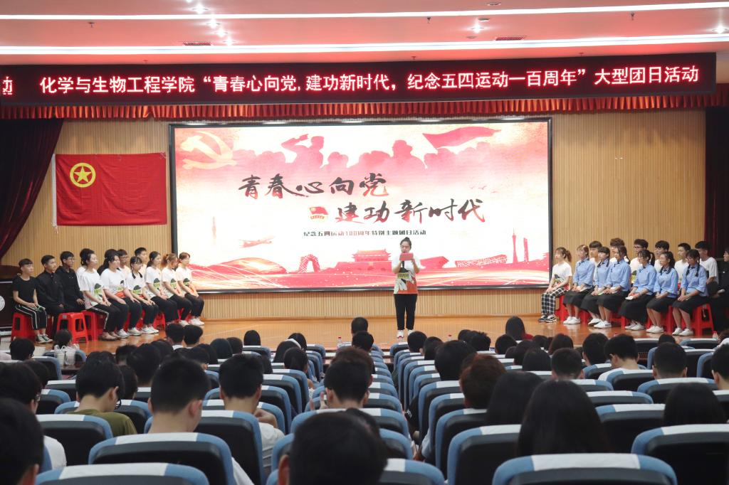 为纪念五四运动100周年,引导和激励广大青年学子大力弘扬爱国主义精神,勇做新时代追梦人。5月11日,化学与生物工程学院于图书馆报告厅举办了青春心向党,建功新时代——纪念五四运动100周年大型团日活动。学院团委副书记黄道坤,应化2018级团支部全体成员及2017级、2018级部分学生参加了本次活动。