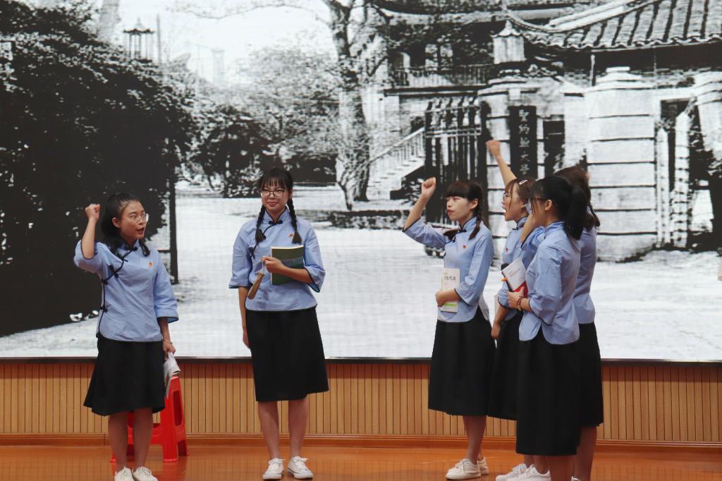 主题团日活动在全体师生高昂的《光荣啊,中国共青团》歌声中正式拉开了序幕。应化2018级团支部组织现场师生集中观看了爱国影片《我的1919》,并在观看完该影片后由主持人以提问形式检验团支部成员关于五四运动相关知识的学习情况。在精彩的情景剧表演环节中,同学们声情并茂地还原了1919年青年学生组织的爱国运动场景,充分展现了中国青年的远大理想抱负和深厚的家国情怀。团支部成员在齐唱《少年中国说》中深刻认识到了青年兴则国家兴,青年强则国家强的内涵。活动最后,团支部团支书颜文菊同学在此次团日活动总结中说道,重温五四运动100年前那段激情燃烧的岁月让我们深刻认识到了革命先烈的勇敢与伟大,作为新时代大学生,应该积极继承和发扬五四运动精神,在担负起时代使命的奋斗中焕发出更加绚丽的青春光彩。