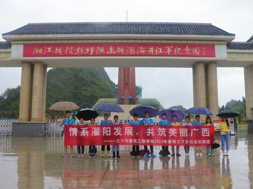2019年7月13日,土建学院“情系灌阳发展,共筑美丽广西”暑期社会实践团,出发前往本次社会实践的第一个地点—灌阳县湘江战役新圩阻击战酒海井红军纪念园。