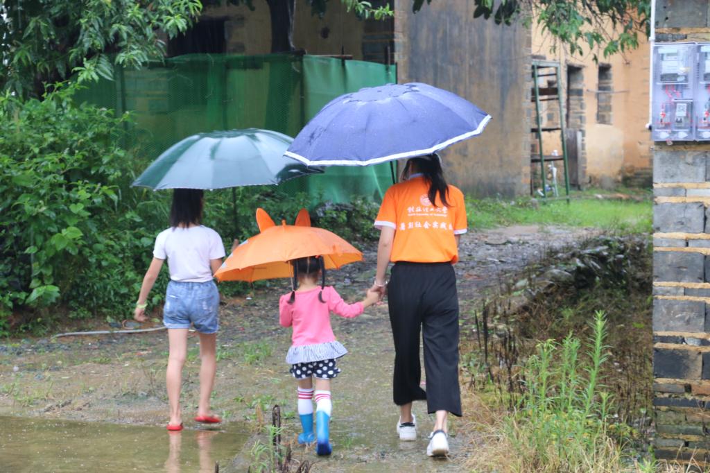 实践团成员护送小朋友回家