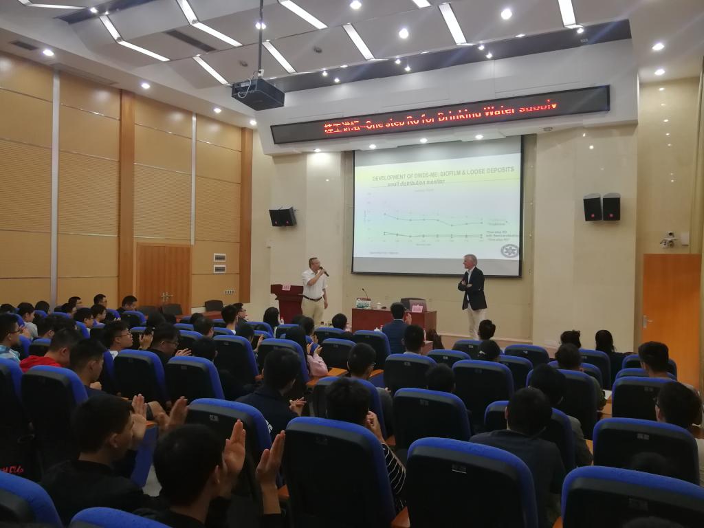 在本次讲座中,Walter van der Meer教授首先对当前世界净水技术和方法进行了讲解,列举了膜滤技术—One-Step Membrane Filtration(一步膜滤)以及净水方法—管网、矿化、气水清洗等,并详细的描述了世界各国水质标准和净水需求以及净水技术未来的发展趋势和相关研究进展及结果。接着,Walter van der Meer教授又向大家介绍了当前水质面临的威胁以及荷兰净水技术的发展。最后,讲座在热烈的现场交流中落下帷幕。