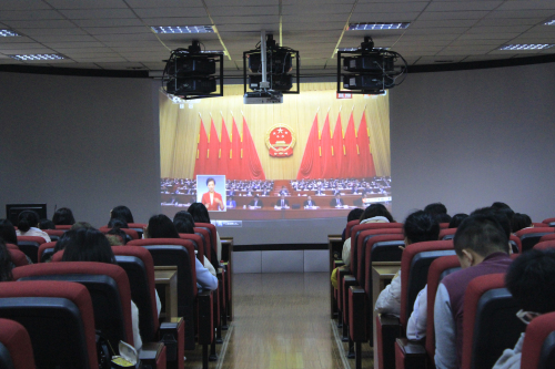 为加强团学队伍建设, 3月9日下午,旅游与风景园林学院组织学生干部代表在04616报告厅观看《十三届全国人大二次会议开幕会》视频,共同学习两会精神。
