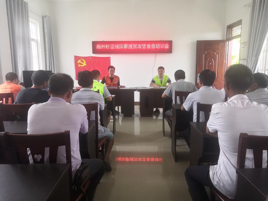 为迎接国家脱贫攻坚普查,7月16日,进结镇高州村村委组织召开“高州村脱贫攻坚(乡村振兴)工作队员专项考核评议会、高州村迎接国家脱贫攻坚普查培训会,驻村工作队长赵克勤、驻村第一书记王华金、工作队员梁浩以及工作队村民各小组组长参与会议。会议上各组长对驻村第一书记和工作队员进行了工作评分,此外,8月初,国家脱贫攻坚小组到高州村检查并进行相关培训。