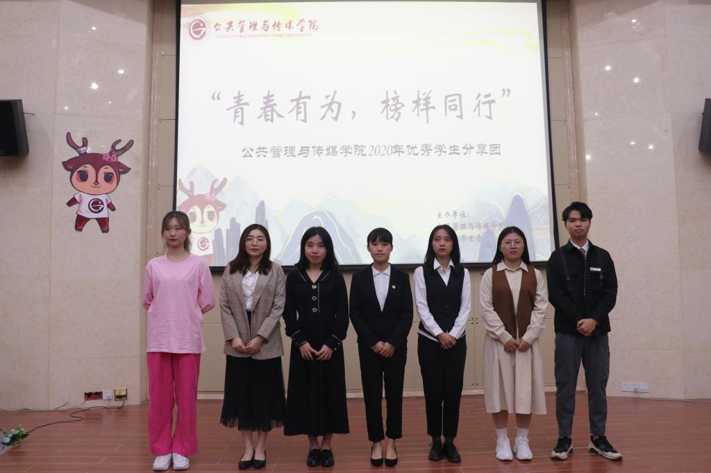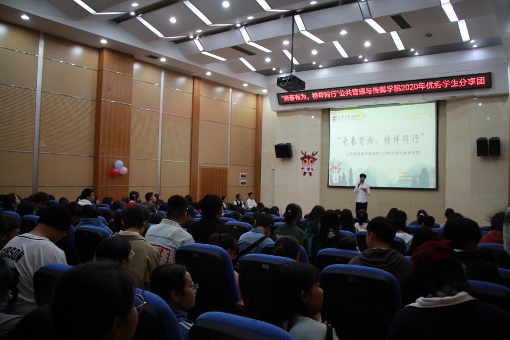 青春有为,榜样同行。10月20日晚上,公共管理与传媒学院在雁山校区萃华楼报告厅顺利举行2020年优秀学生分享团活动。这次活动邀请了管媒学院七位优秀学生代表:焦曼曼、陈朋诗、石瑜璇、谢钰龙、李嘉嘉、张雯韵、劳静玲向20级新生进行交流分享。