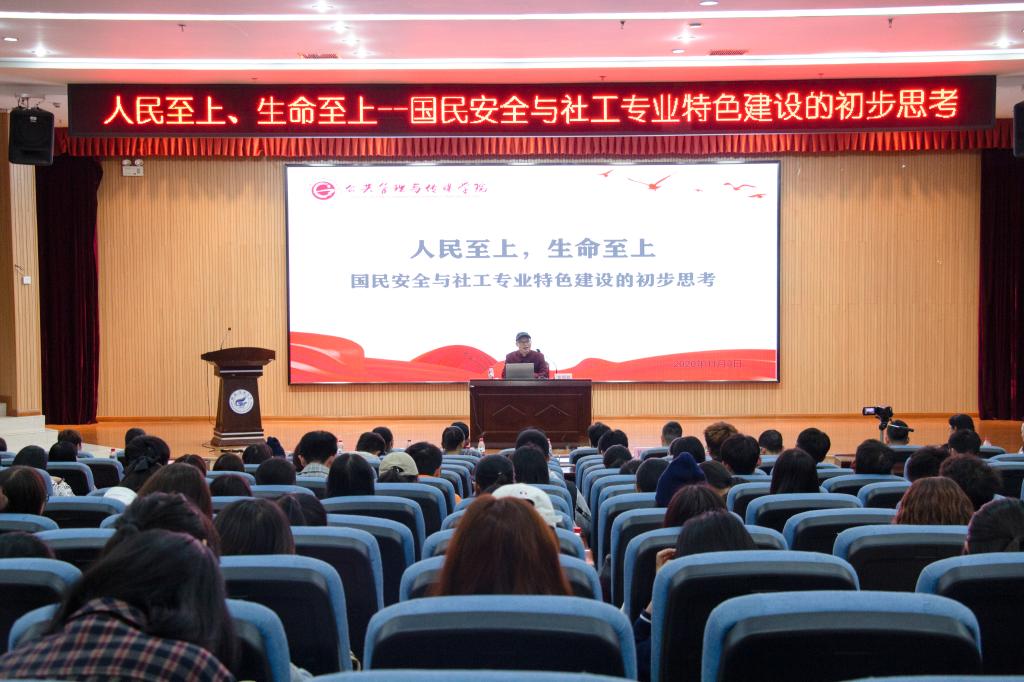 为提高社会工作专业同学们的国民安全意识,推进专业特色的建设。公共管理与传媒学院于2020年11月3日下午在雁山校区图书馆报告厅举行了“人民至上,生命至上”社工主题讲座活动。学院党委书记陆平老师、团委副书记莫田娟老师和社会工作教研室全体老师出席了此次活动。社会工作专业的同学参与了此次活动。