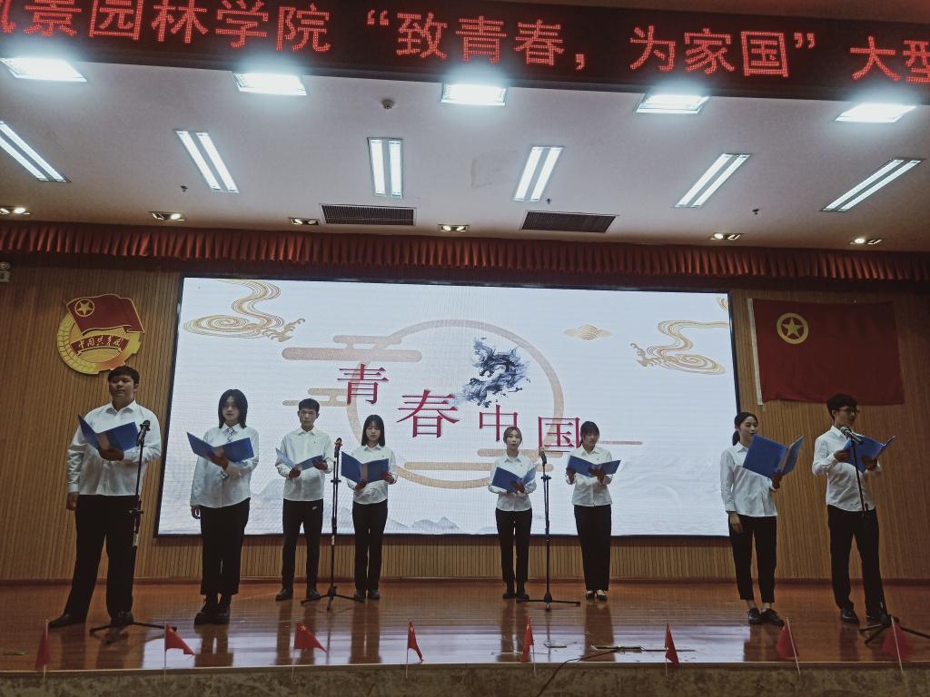 活动中,一首朗诵节目《青春中国》讴歌了正在崛起、正值青春的伟大中国,激励着所有青年人拼搏进取。旅游与风景园林学院18级退伍学生吴桂源分享了对于军旅生活的感受,“军人,就是要昂首向前,不管能不能赢,只要敢拼就会有收获”,让我们体会到敢打敢拼的精神,更让我们看到一名青年学生的初心。活动中,学生们还通过《染血的党证》话剧表演带我们走近了共产党员,坚定了理想信念。一首歌舞表演《青春畅想》让我们看到青年人的热血青春,使人壮志昂扬,满怀希望。