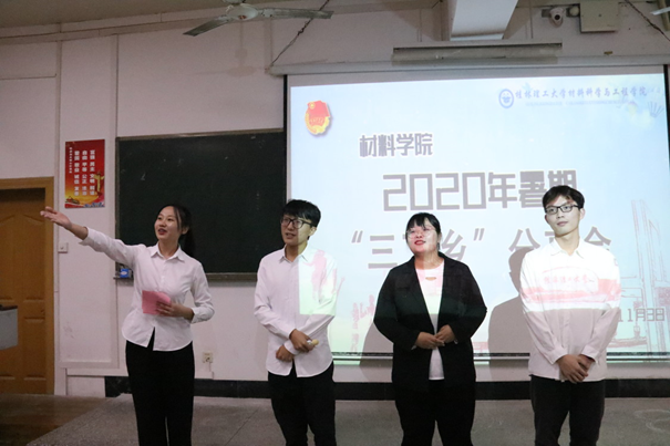 11月3日晚,材料科学与工程学院在屏风校区09301成功举办2020年暑期“三下乡”经验分享会,团委兼职副书记卢桂盛老师、18级辅导员韦孝鹏老师、商学院和土木建筑与工程学院实践部代表以及200多名同学参加了此次分享会。