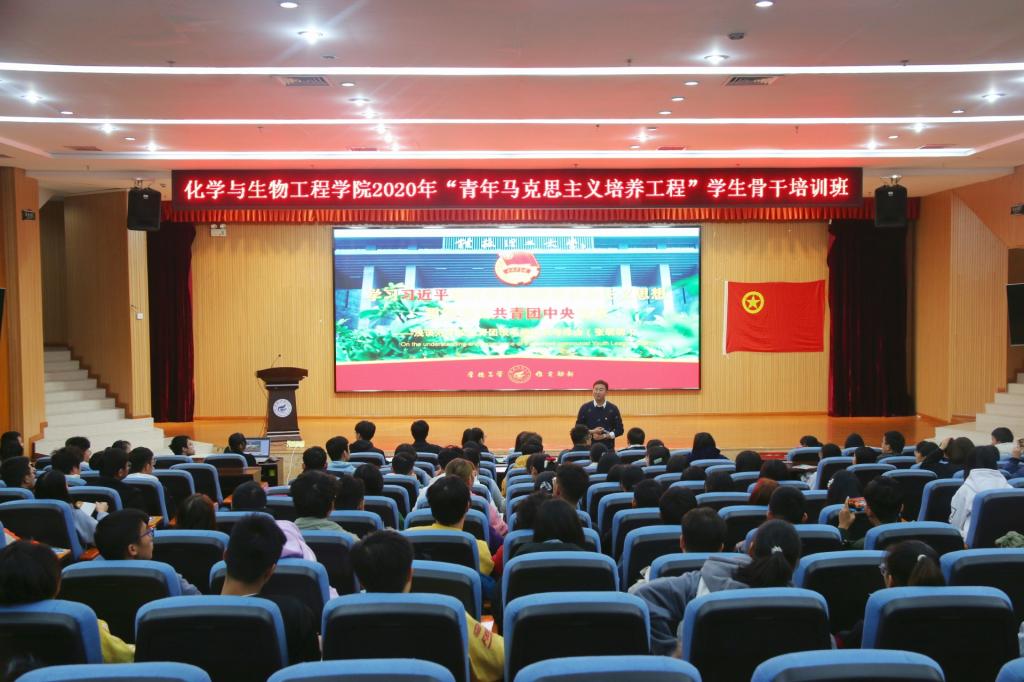 为深入学习领会习近平新时代中国特色社会主义思想,贯彻落实团中央关于开展“青年马克思主义者培养工程”(简称“青马工程”)和“大学生骨干培养计划”的精神以及团校培养青年、教育青年、服务青年的工作要求,扎实推进团的“一学一做”学习教育,提升广大团学骨干的政治素质和工作能力,更好地发挥广大团学骨干的桥梁纽带作用。11月25日下午,化学与生物工程学院于雁山校区图书馆报告厅举办了2020学年“青年马克思主义者培养工程”学生骨干(团校)培训班,学院团委书记张萌萌老师、团委副书记王凯浩老师,学院团委、学生会、融媒体中心等团学组织全体成员及2020级班长(团支部副书记)、团支书近200余人参加。